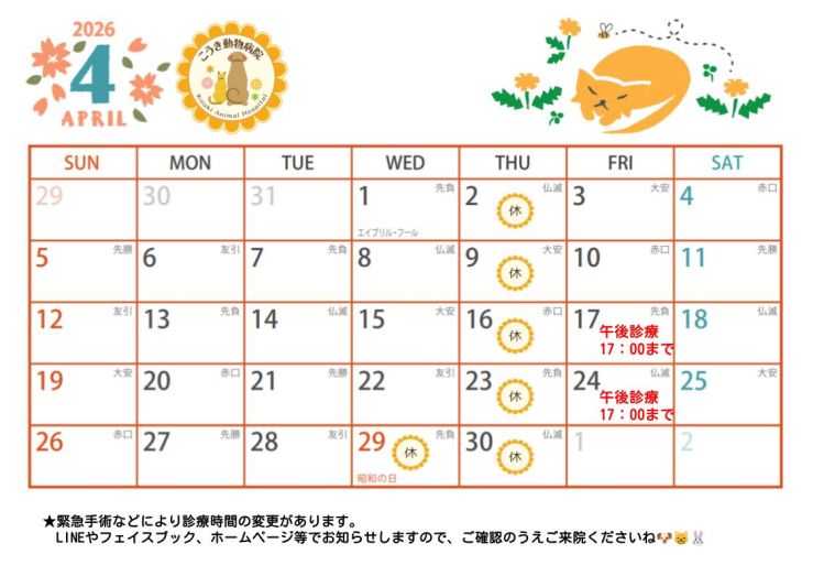 こうき動物病院公式Facebookページでは、最新情報や病院からのお知らせを公開しております。インスタグラムも開設しました!