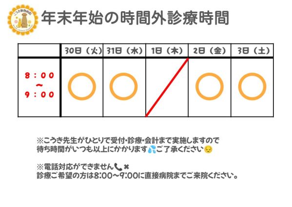 | AM 9:00~12:00 診療受付 ~11:30 | 〇 | 〇 | 〇 | 休 | 〇 | 〇 | 〇 |